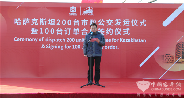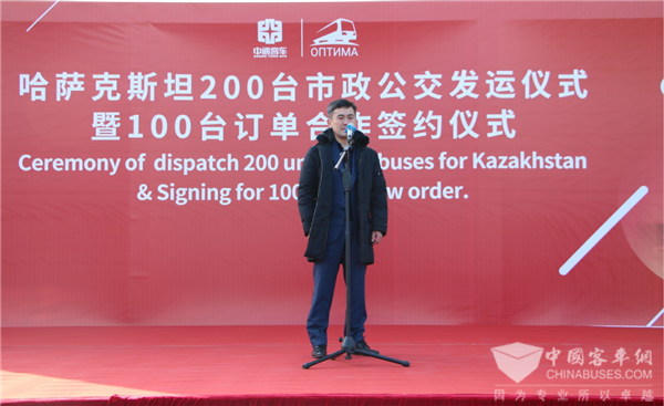 哈萨克斯坦OPTIMA公司董事长Mr.BERTAYEV RYSBEK 在讲话中表示,中通客车的产品节能、可靠,中通客车的产品质量值得信赖,也期待与中通客车开展更长久的合作,成为更紧密的战略合作伙伴。