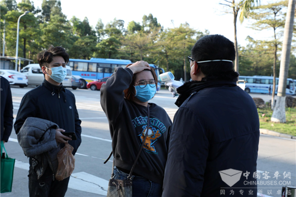 按照惯例,金龙客车开工第一天将举行新春团拜活动,但2020年的团拜却不同于往年。开工当日,金龙客车高管团队便前往各门岗督查入厂检测工作,向员工献上亲切的问候。厂区各门岗员工们井然有序入厂,各大车间全线运转,一派忙碌景象。