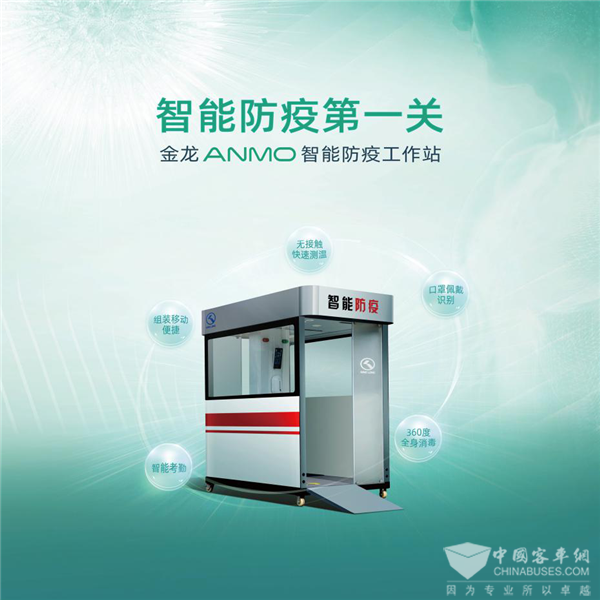 时下社会各界陆续复工,对流动人员的病毒监测与筛查是疫情防控的关键。对此,金龙更是跨界研发智能防疫工作站。可实现自动测温及报警、手身消毒及口罩检查等检测功能,还可实现上下班打卡、疑似人员照片上传app等给力功能,无需人员干预,助力高效通勤。