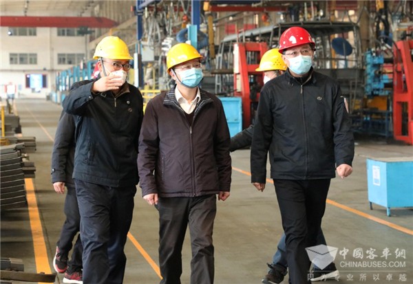“坚持疫情防控和推动高质量发展两手抓、两不误、两促进、两必胜。”2月18日一早,福汽集团党组成员、副总经理、金龙汽车集团党委副书记、副董事长、金龙客车董事长谢思瑜深入金龙客车生产一线、食堂、工程研究院等指导疫情防控和复工复产工作。他向同事们喊话:“要充分调动干部员工创业做事的干劲与狠劲,与时间赛跑!更要加快医疗车、检测车等新车型的研发,推进全健康客车技术应用,并及时推向市场。”