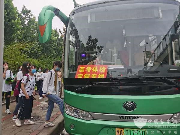“我们的‘高考体检定制专线’”均为豪华型纯电动客车、设置定制公交班线服务标识。另外,根据师生出行需求适时开通,一站直达,中途不搭载社会乘客。”车队成员李军说道。