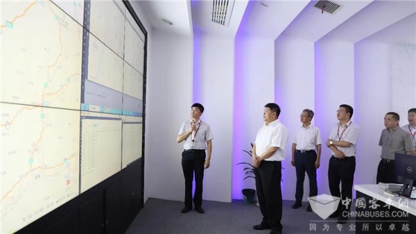 在云智通·大数据云视中心,技术人员介绍了独具行业特色的新能源汽车“云智通”平台。公司副总经理、总工程师汪伟介绍说,“云智通”是公司历经十余年打造的、集大数据、云计算、物联网、AI等先进技术于一体的车辆智能监控诊断中心,对公司在客户线路上的所有车辆进行全天候智能监控、数据分析、故障诊断,有安全卫士、汽车医生的美称。余卫平饶有兴致地了解中控大屏上实时变化的数据,并仔细询问各地车辆运营状态信息、驾驶员行为数据、车辆安全等信息。余卫平指出,公司要在用科技保障车辆安全运营上进一步加大投入,提前布局,为用户、为社会创造更大价值。