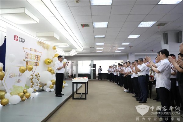 今日,恰逢公司员工提前一天为公司成立13周年庆生,余卫平饶有兴致地参加员工自发举办的“生日会”。在温馨喜庆的氛围中,他亲自将写有“Happy Birthday”的蛋糕切开,同时不失风趣地勉励大家:“今天是个不平凡的日子,大家一同走过13载,并肩作战风雨同舟,取得了辉煌的成绩,在此向大家取得的成绩表示祝贺!集团领导将和大家同呼吸共命运,一起打造‘网红电动’!”