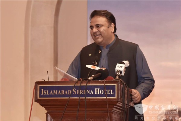 中国驻巴基斯坦大使姚敬、巴基斯坦大宇运输公司董事长Sameer Chishty、巴基斯坦科技部长Fawad H. Chaudhry、巴基斯坦参议院副主席Salim H. Mandviwalla出席本次签约仪式并发布致辞。