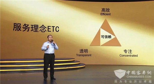 金龙客车国内营销公司副总经理吴炜琪表示,市场的需求和企业自身发展,驱动着我们要进行一场服务变革,以客户的需求为核心,进行品牌化升级。2020年,金龙“龙悦”服务品牌由此诞生。