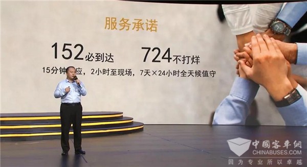 一切以客户满意为中心开展工作,打造行业领先的服务品牌是金龙的目标。为达成这一服务目标,金龙作出了两个承诺:152必响应,724不打烊。152必响应,当车辆发生故障后,服务人员在15分钟内作出响应,在服务半径辐射的范围内2小时内到达现场;724不打烊,7天24小时全天候值守,服务随时待命。