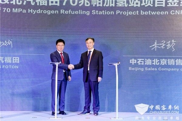 北汽福田与中石油项目签约,联手打造北京首座70兆帕加氢站