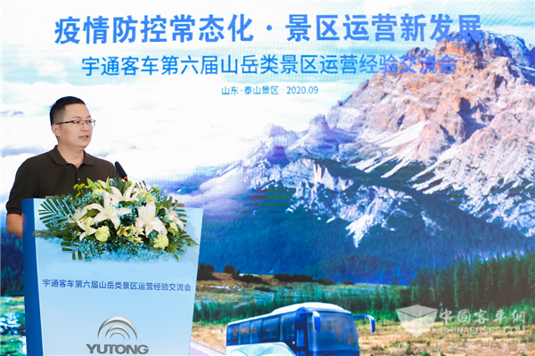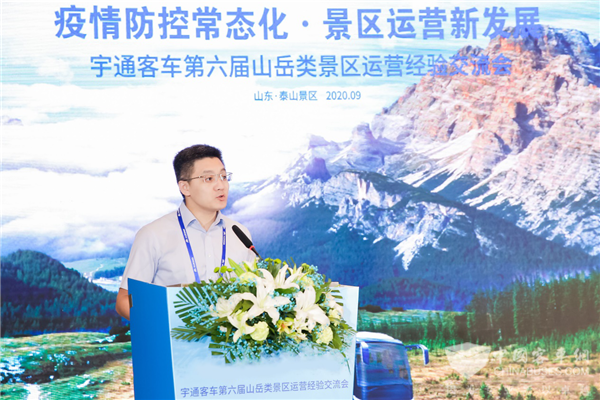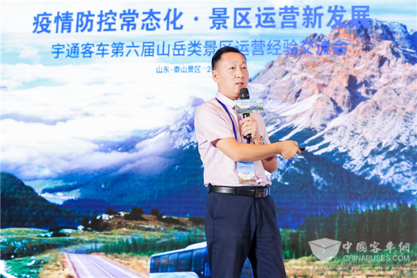 会上,宇通客车景区及双层车销售经理孟朝明从景区车辆产品、为应对疫情宇通研发的一系列高科技配置,以及能够满足景区未来发展和智慧景区建设的宇通智能网联自动驾驶技术等多个方面,为景区车辆运营提供了全套的解决方案。
