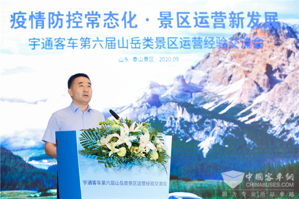后疫情时代,景区发展该何去何从?2020年9月17日,宇通客车第六届山岳类景区运营经验交流会在山东泰安泰山景区隆重举办,大会以“疫情防控常态化·景区运营新发展”为主题,行业专家、来自全国各大景区的运营单位代表等200余人出席,大家深入交流,积极探讨景区车辆运营新模式、新方法,为景区发展提供新思路,注入新内涵。