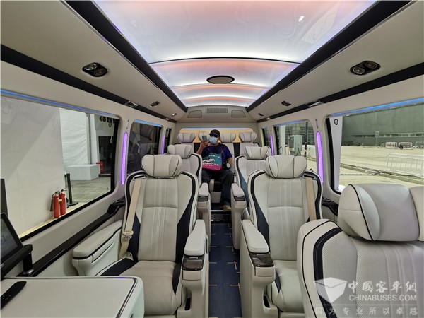 作为顶级商务中巴,丰田考斯特在车内氛围营造上同样考究,增加了航空顶灯的设计,更加注重车内的色彩搭配。航空顶灯有多种色彩选择,紫色灯光的神秘,绿色灯光的淡雅,满足个性化的乘坐需求。同时,考斯特增加隐私玻璃设计,车内配备可收纳液晶电视,配合宽大的航空座椅,带来高端轿车般的乘坐体验。
