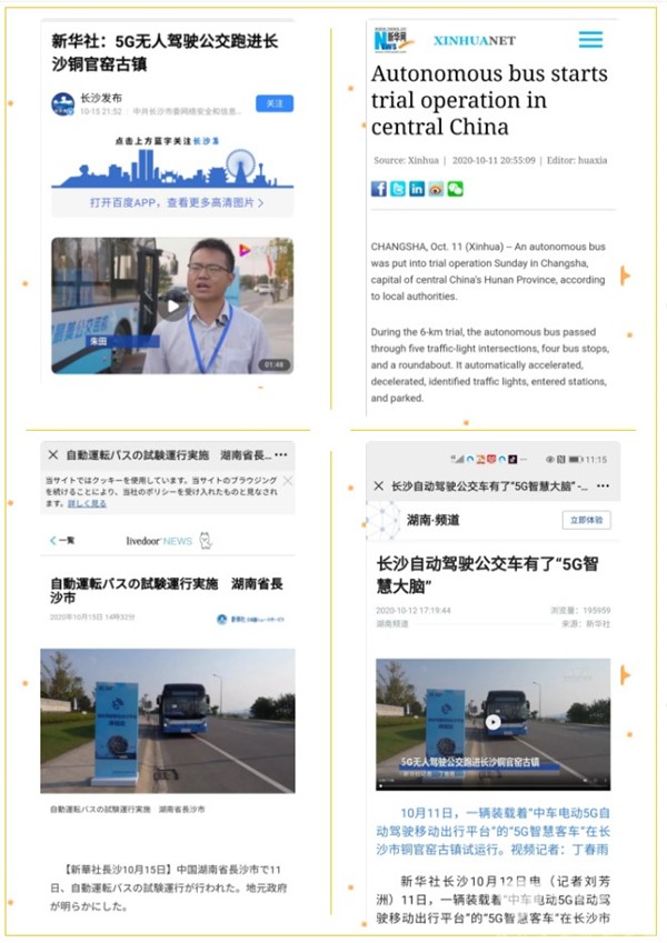 值得一提的是,新华社更是将中车电动5G智慧客车的新闻翻译成了英文、日文、韩文、法语、阿拉伯语、葡萄牙语等多国语言并对外发布,将喜讯传遍全球。