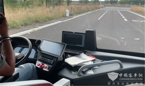 在法试运行的12米自动驾驶客车以智能驾驶、智能动力、智能互联为依托,搭载升级版“T动力”,辅以智能网联V2X技术,可全方位实施人、车、路动态信息实时交互,保证交通安全,提高通行效率。自动启停、自动转弯、自动超车、自动避障……每一次起步、加减速的平顺;每一个路况的合理应对;每一次转弯及避让的精准,都让法国客户不禁竖起大拇指。