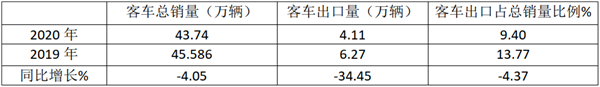○2020年客车出口占总销量的比重为9.4%,比2019年下降4.37个百分点