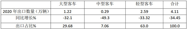 根据中汽协数据,2020年大中轻客车出口同比及占比: