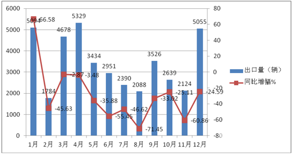 根据中汽协数据,2020年1-12月各月客车出口量及同比增长情况: