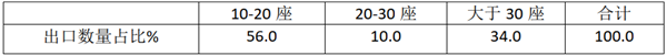 根据海关数据,我国2020年按座位数划分,客车出口占比: