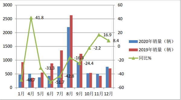 根据中国客车统计信息网数据,2020年1-12月各月校车销量及同比情况如下:单位/台