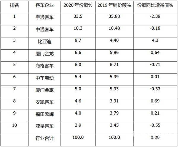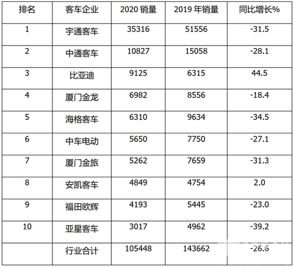 影响中国客车业|2020年度6米以上大中型客车销量年度盘点
