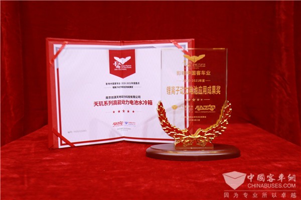 作为开沃集团全资子公司的南京创源天地动力科技有限公司,在本次活动中,创源动力凭借其最新产品天玑系列高能动力电池水冷箱斩获“锂电子动力电池应用成果奖”代表了客车行业在年度新产品应用与技术先进性上对创源动力品牌及其动力电池系统的认可。