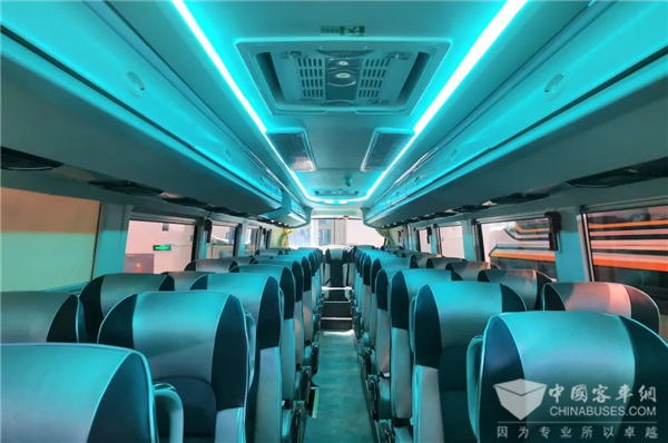 银隆新能源脸谱公路车车内配备高靠背豪华大巴车座椅、豪华旅游车风道带行李架、遮阳帘、车顶带LED调节氛围灯、USB充电口、车载小桌板及阅读灯等个性化设备展现人文关怀,为乘客打造安静舒适的乘坐环境;车内配置具有空气净化功能天窗、自循环光触媒紫外线消毒系统,对车内空气进行消毒杀菌、过滤净化,打造健康安全的出行环境。该车集文化、智能、人文于一体,适用于景区摆渡、旅游客运等线路,是名符其实的“高端旅游客车之星”!