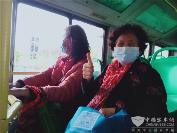 69岁的陈奶奶坐上新开通的开沃公交车,动情点赞