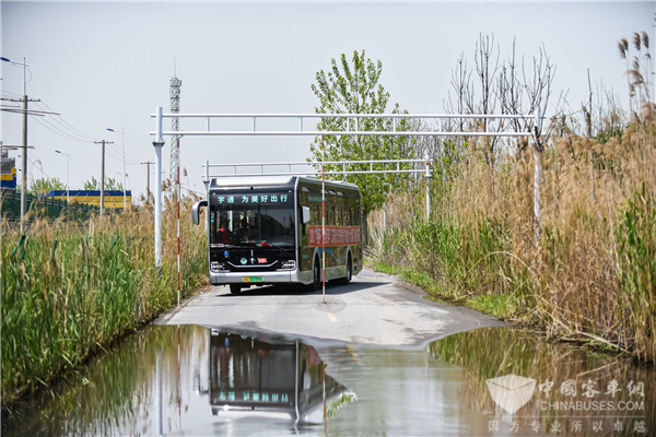 大赛中,10.5米和12米的宇通“宇威”造型高端智能网联公交车担任比赛用车,该车在造型、性能、结构、网联化、电动化、智能化方面进行了全面升级,技术水平与世界接轨。该车为赛事保驾护航,既是智能网联公交进一步推广普及的象征,同时也树立了新时代公交车安全、智能、绿色的新形象。