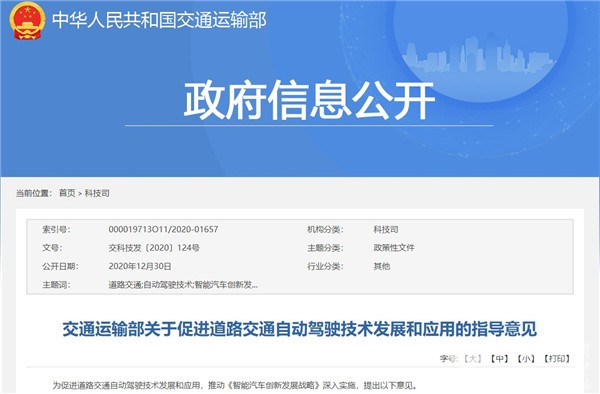 在政策方面,整个自动驾驶行业同样被打了一针“强心针”。2020年12月30 日,交通运输部公开发布了《关于促进道路交通自动驾驶技术发展和应用的指导意见》,指出在自动驾驶客运出行服务方面,支持在封闭式快速公交系统、产业园区等区域探索开展自动驾驶公交通勤出行示范应用。鼓励自动驾驶开展商业运营探索,客运出行方面“公交先行”。