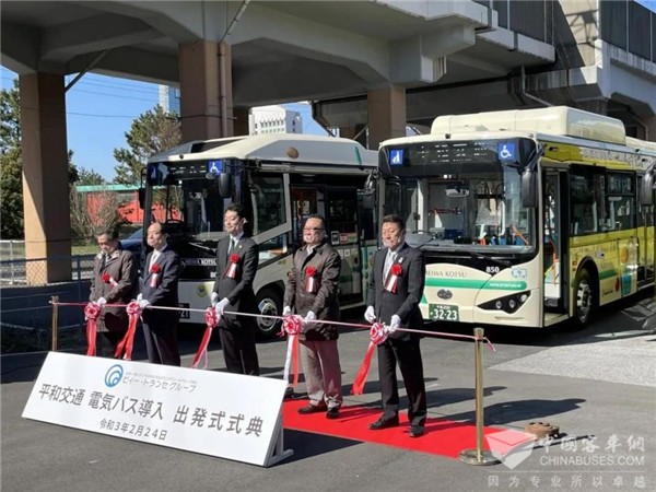 同月24日,比亚迪首次向千叶县导入电动大巴K8和小型电动客车J6,发布仪式在日本千叶当地举行,这也是比亚迪首次向日本交付大型电动客车K8。同一天,比亚迪日本有限公司与京阪巴士有限公司、关西电力有限公司在日本京都宣布达成三方合作,三方将携手助力京都实现日本2050年碳中和目标,共建无碳社会。目前,比亚迪大巴已陆续驶进京都、冲绳、福岛、岩手、山梨、东京、长崎以及千叶等日本多地,给当地人们带来绿色出行新体验。