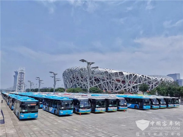 欧辉新能源客车在鸟巢外集结待命