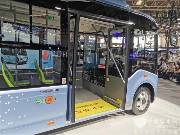 当电池的空间被节省,再结合短悬架布置,轴距便进一步得到扩大。车内空间也有了越级的表现,能够提供给乘客舒适的乘坐环境,相比同级别传统燃油公交车更具优势。同时,行业最低(320mm)一级踏步入口设计、1100mm内宽车门,便于上下车,这一点还充分照顾到社区居民群体老年乘客的出行需求。