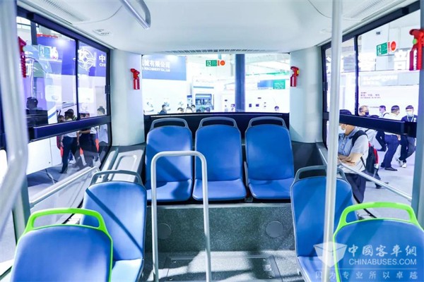 乘客区采用一体化设计车顶,斜撑座椅,便于卫生清洁,而更宽阔的地面对于通行和站立来说都非常必要;车身配装超大可视玻璃,透光区域达15.6㎡,现代感、科技感十足。
