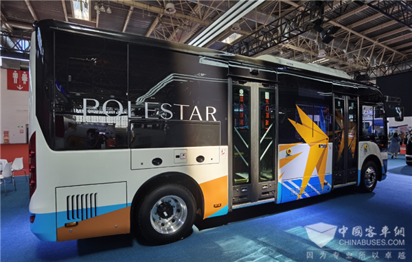 在2021北京道路交通展上,一台喷涂有”宁海县公共交通有限公司“字样的8米级“北极星”纯电公交车成为全场展品中为数不多的亮点车型。