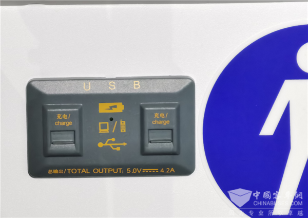 车内配置了方便给电脑、手机充电的USB接口,尽管USB接口近几年在城市公交车上已经很常见,但对于城乡运输场景,这种便利设计似乎并不多见。