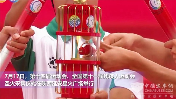 采火仪式圆满成功,圣火护卫将圣火引入火种灯,随后被送上“全运号”,在宇通T7的护送下,圣火从延安市顺利抵达西安市。