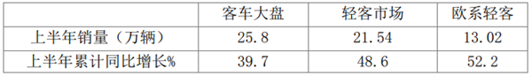 2021年1-6月欧系轻客销量、同比与客车大盘比较(数据来源:中汽协):
