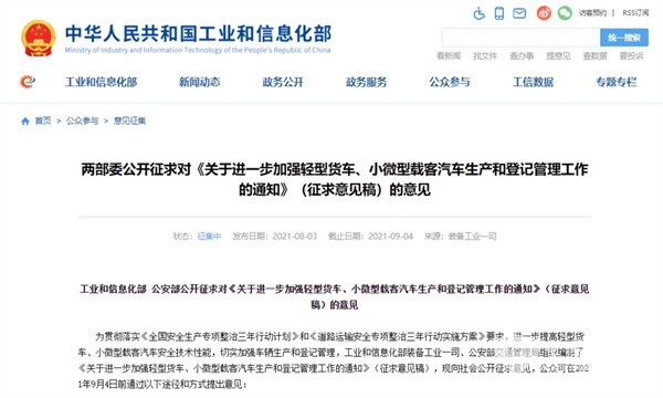 最近商用车行业最关注的焦点,莫过于与“蓝牌轻卡新规”相关方面的话题。2021年8月3日,工信部、公安部两部委联合下发公开征求对《关于进一步加强轻型货车、小微型载客汽车生产和登记管理工作的通知》(征求意见稿)的意见(其核心内容是关于轻卡今后上蓝牌的技术规定,下简称“蓝牌轻卡新规”),引起了当下商用车行业高度的关注。