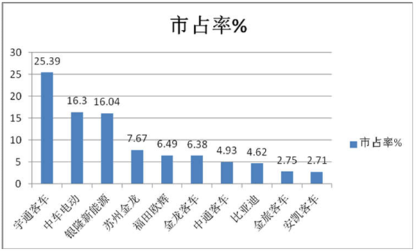 亚星客车市场占比为2.97%,位居第十,但同比份额增加0.89个百分点。