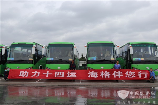 据了解,目前已有1500多台海格客车直接或间接地为第十四届全运会做着交通运输保障,其中,1300台海格公交车在西安市内、周边有条不紊地运营,210台海格中巴、大巴则在全运场馆、全运村等固定区域提供着专属服务。