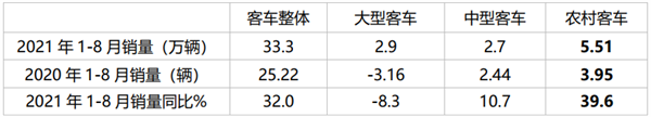 ●1-8月农村客车市场火热,跑赢客车大盘