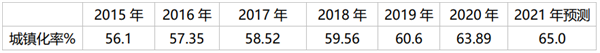 上表可见,近年我国的城镇化率在逐年提高,从2015年的56.1%,逐年提高到2020年的63.89%,并将预测在2021年达到65%。毫无疑问,城镇化率高了,路就宽了,路就好了,农村和城乡的交通就更便利了,必然带动农村客车市场的发展。