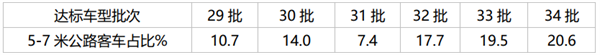 根据2021年交通部发布的近6期公路客车达标车型公告,5-7米农村客车车型占据总车型比例: