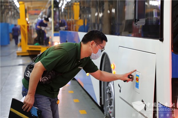 在国内,金龙客车海外售后服务部深入车间产线,紧盯每一条产线,全程跟踪检验,将可能产生的问题点“扼杀”在生产线上,曾连续2个月早8时至晚8时一直驻扎在车间,服务流程前置、服务人员前置,从出厂开始提供交付+服务的全面保障,覆盖从工厂到保修期后的服务 11 个环节,形成海外营销与服务过程的快速反应机制。