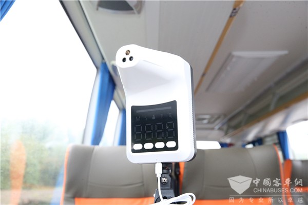 针对客户需求,这批途悦客车在配置上做了定制化选装,包括测温仪、全车无死角摄像头、消毒换气装置、前后LED显示屏、全车USB接口、杯托、手机槽等等,从车辆功能上突出人性化服务。
