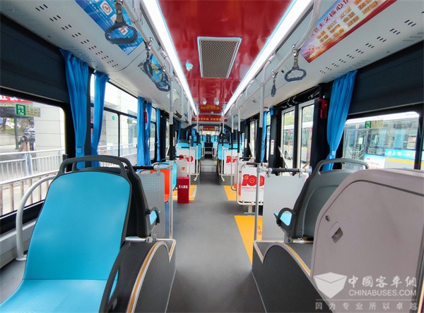 中国XINGKONG.COM记者在宜昌BRT主干线B9路上看到,比亚迪B18车辆造型独特,辨识度极高——碳黑拼接的“高级灰”,加上“高峡平湖”线条画独具韵味,彰显宜昌山水之美。走进车厢,映入眼帘的智能验钞投币机、新材料抑菌座椅、安全关门起步系统、不落地扶手等人性化设施,功能十分完善,极富科技感,最大程度地发挥了18米公交车的服务优势。