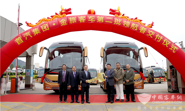 金秋十月,30辆金旅领航者盛装启航。2021年10月23日,首汽集团·金旅客车第二批领航者交付仪式在厦门金龙旅行车有限公司(简称金旅)海沧基地举行。据了解,此次交付的30辆金旅领航者,将与北京首汽(集团)股份有限公司(简称首汽集团)已有的金旅客车一起,为首汽集团所承担的重大国内及国际活动、会议等提供交通服务保障。