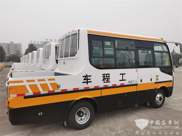 此外,车辆可选装全顶置空调系统,燃油式独立暖风系统(可满足高寒地区使用)、驾驶员座椅采用减振座椅、内行李架、全幅遮阳帘、侧窗折叠式窗帘、电子钟、豪华彩点地板革、遥控外摆式乘客门等配置能够全面满足轨道交通、电力行业在检测、排除故障、抢修、抢发电等刻不容缓的紧急状况时的用车需求。