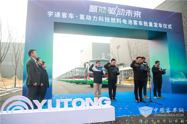 郑州市政府副秘书长王义民,郑州市工业信息化局党组副书记刘延岭,国家电投集团氢能科技发展有限公司党委副书记、总经理张银广,氢动力(北京)科技服务有限公司董事、总经理路遥,宇通客车股份有限公司副总经理曹中彦等出席仪式,共同见证了这一重要时刻。