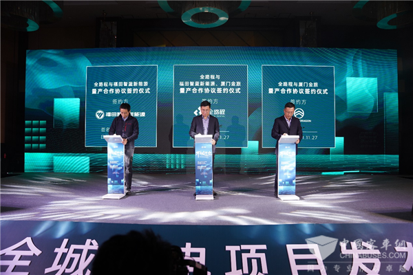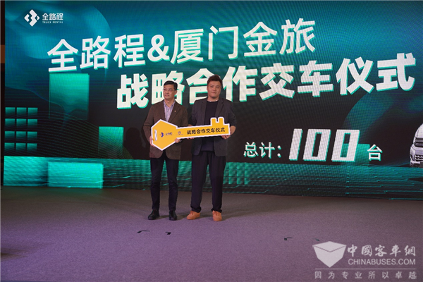 近日,厦门金龙旅行车有限公司(下称“金旅客车”)与全路程物流科技公司(下称“全路程”)在厦门召开的“新能源物流车全城换电项目发布会”上,签订战略合作协议,协议共同研发一款支持换电功能的新能源商用车车型,并基于该车型进行生产、租售、运营等开展全面战略合作。