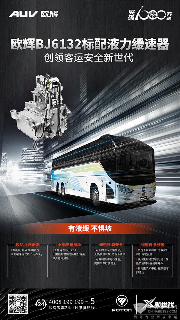 随着我国建设交通强国的脚步逐渐加快,由液力缓速器掀起的客运安全新世代也即将来临。未来,以福田欧辉为代表的各大品牌必将推出更多搭载液力缓速器的安全客车,推动中国客运行业走向安全新高峰,为中国亿万乘客带来更安全的出行体验。