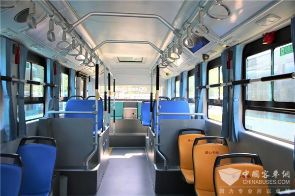 本次批量交付海盐公交的车辆,还搭载了轮边独立悬架驱动系统。相较于传统驱动系统,该系统提高车内空间利用率,10米车辆即可实现12米车辆的载客人数;同时,轮边驱动系统可实现减重超过800kg,运营车辆能耗降低14%-18%,践行“碳达峰、碳中和”。